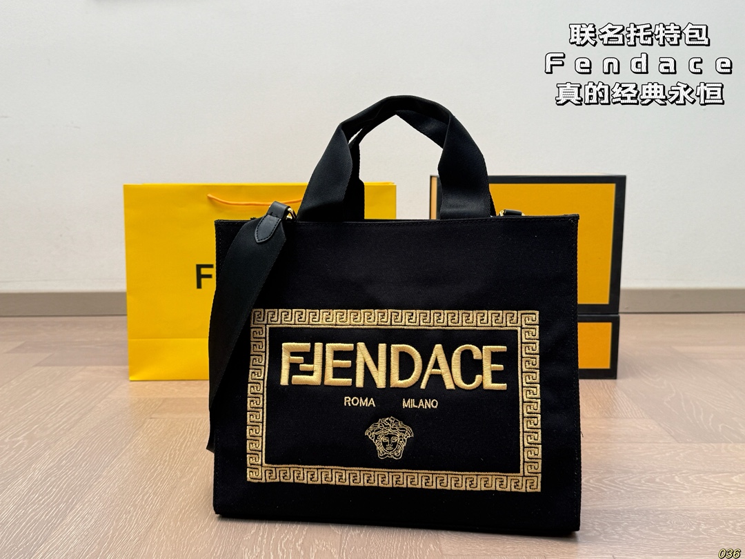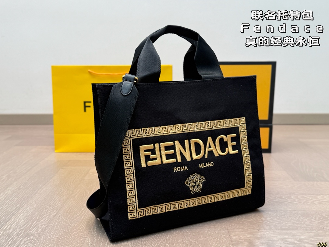 Fendi Versace joint Tote BagFendace VERSACE Fendi new product!Limited tote bagCelebrities such as Song Yanfei and Zhao Wei all have the same styleSize: 35 29