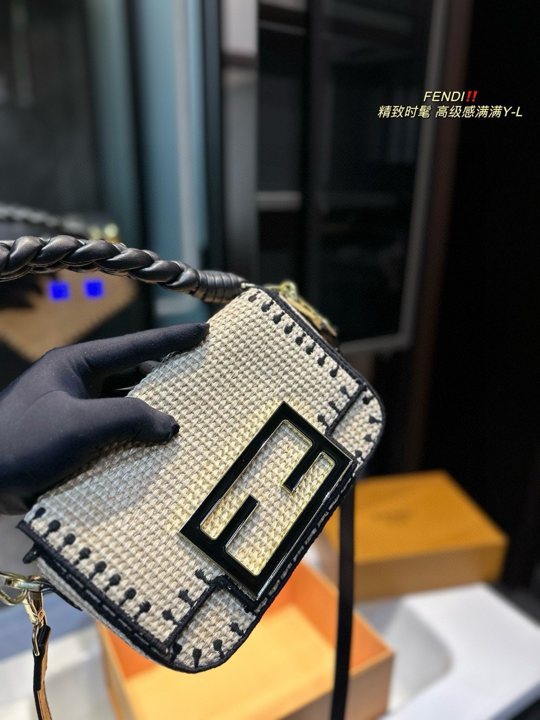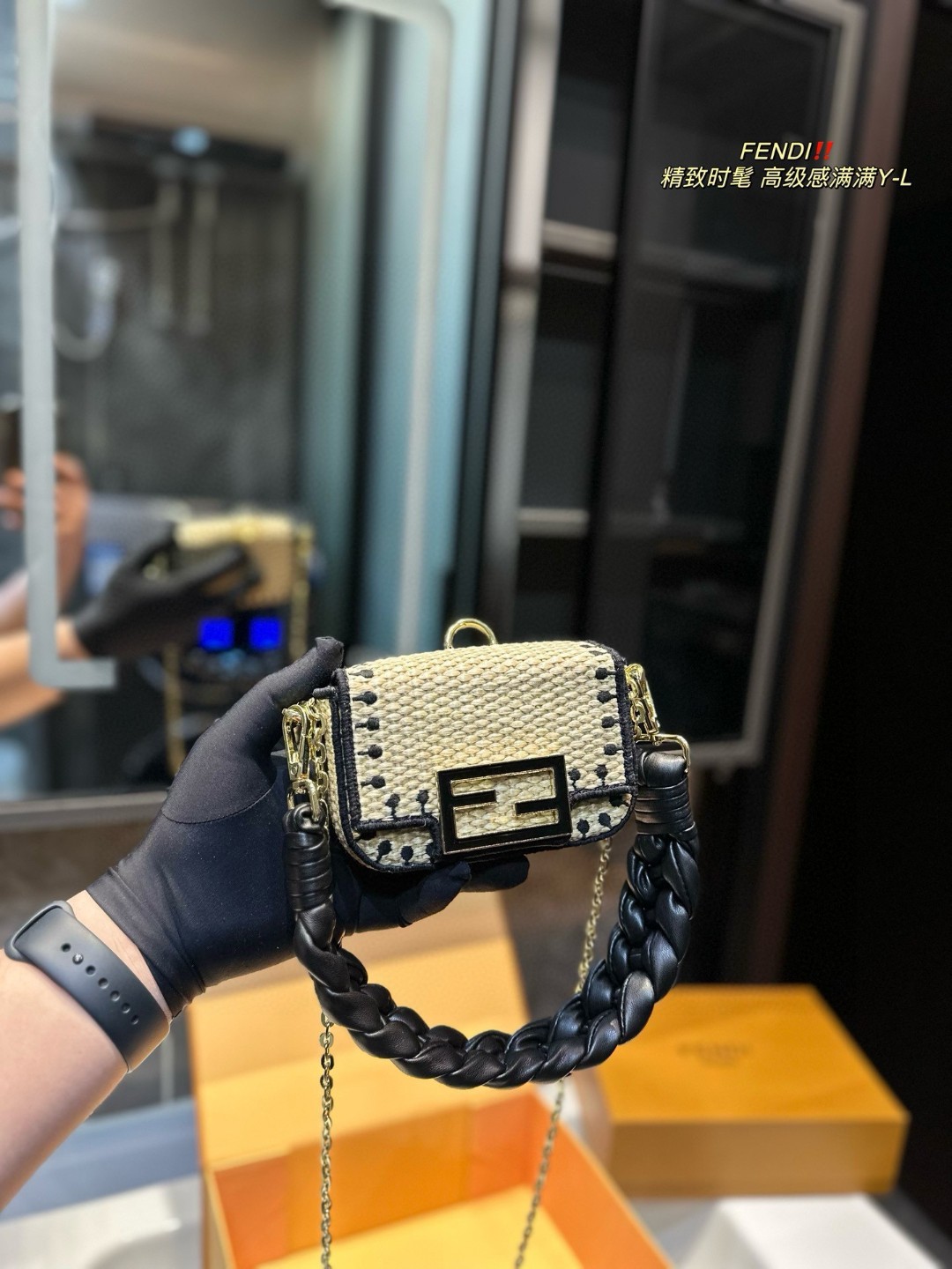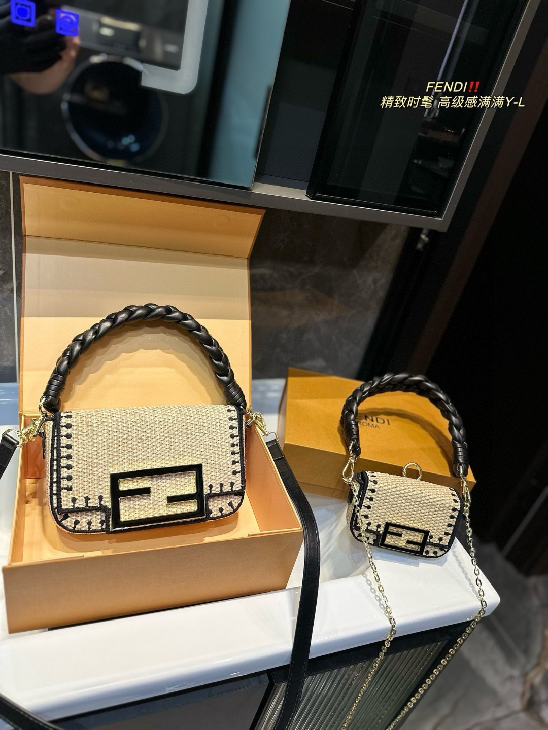 FENDI/FENDI Lafite straw enamel-coated oversized FF magnetic buckle mini shoulder bag handbag one of the hottest travel items in summer is a straw bag.It's so cute.Available for vacation and attendance size: Large 23*5*15cm/Mini 14cm