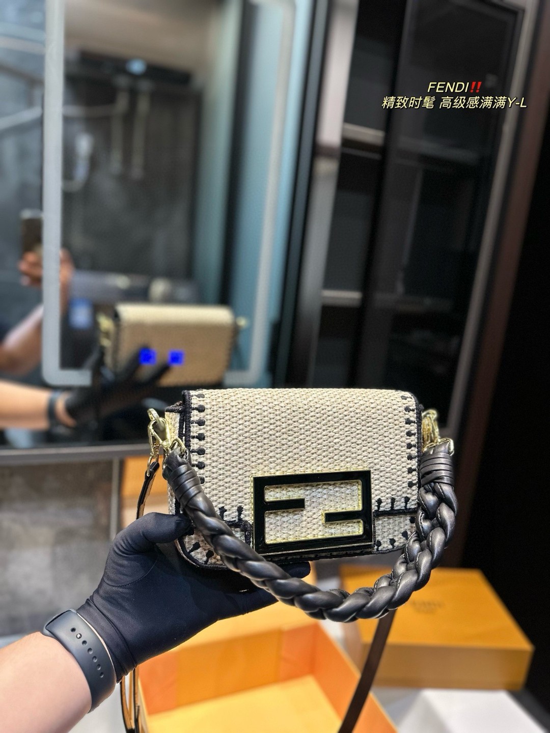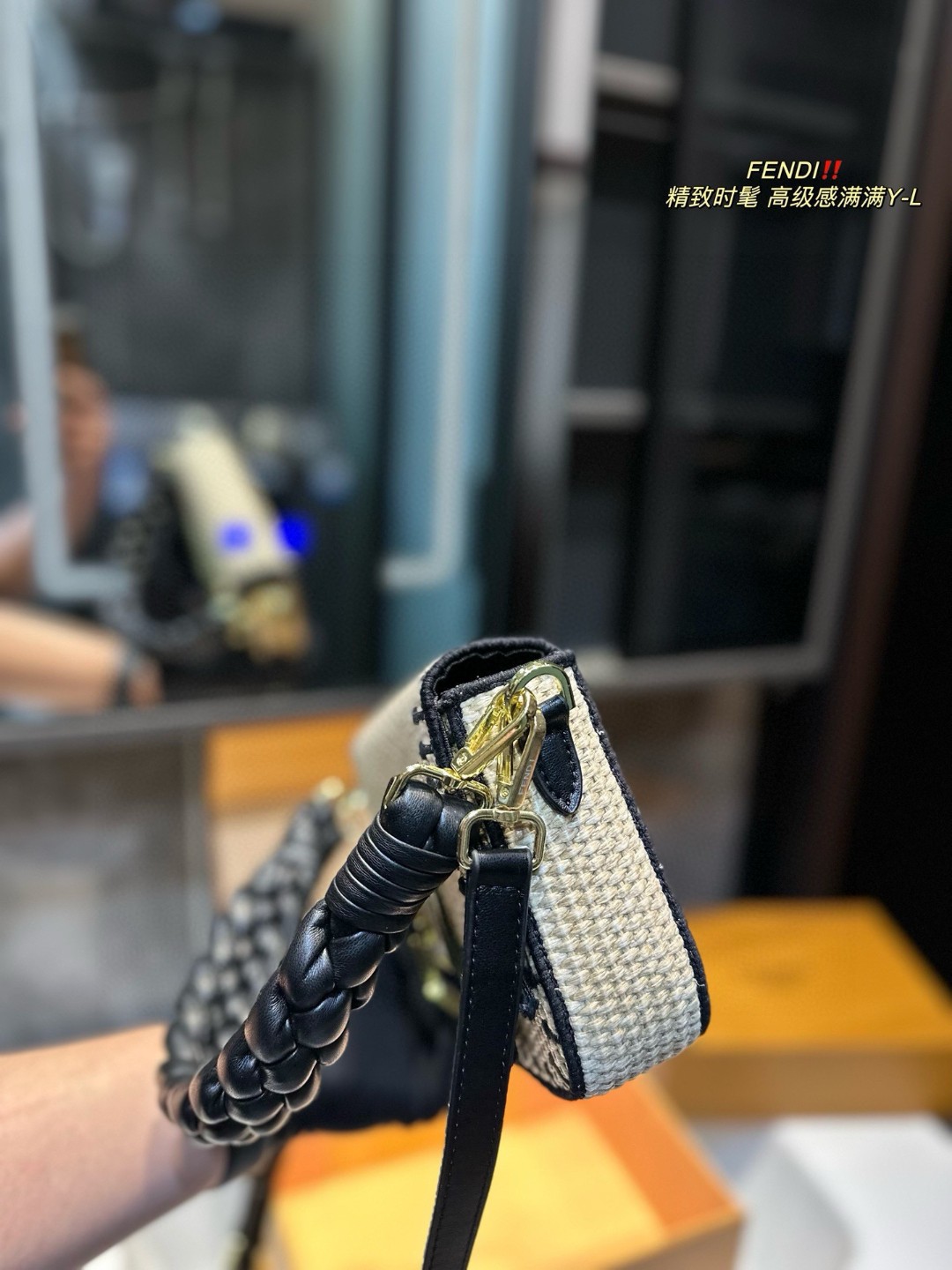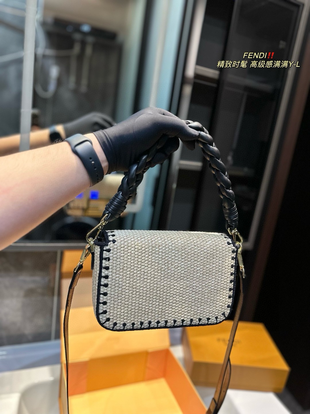 FENDI/FENDI Lafite straw enamel-coated oversized FF magnetic buckle mini shoulder bag handbag one of the hottest travel items in summer is a straw bag.It's so cute.Available for vacation and attendance size: Large 23*5*15cm/Mini 14cm